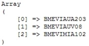 $bme_targyak = array( "BMEVIAUA203" => "Info 2", "BMEVIAUAV08" => "Webfejlesztés", "BMEVIMIA102" => "Digitális technika" ); $elte_targyak = array( "ELTE123" => "Analízis 1", "ELTE345" => "Analízis 2", "ELTE2553443" => "Diszkrét matematika" ); $ossz_targyak = array( "BME" => $bme_targyak, "ELTE" => $elte_targyak ); print_r($ossz_targyak);