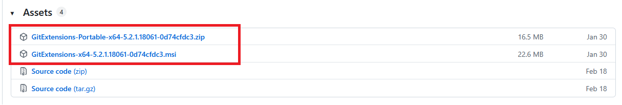 A Git Extensions a tárgy hivatalosan ajánlott Git kliense, a laborgépeken ez biztosan fel lesz telepítve. Kattintsunk a "Download" gombra és keressük meg a telepítős vagy portable verziót az alábbi ábrának megfelelően.