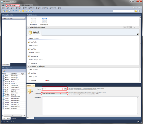 - Fizikai adatbázis séma: MySQL adatbázis sémára vonatkozó információk (pl.: séma név (2), collation(3) )